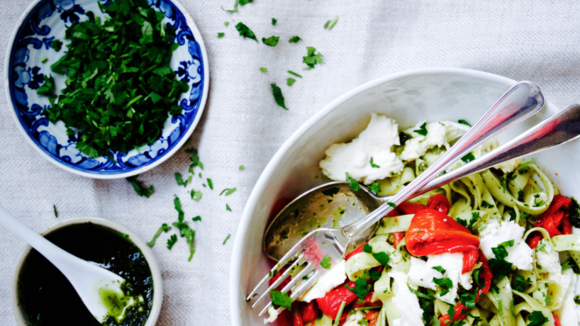 Een kleurrijke, geurige maaltijd boordevol smaak Zoete geroosterde puntpaprika’s, romige mozzarella en een levendige dressing van groene kruiden: deze pasta…