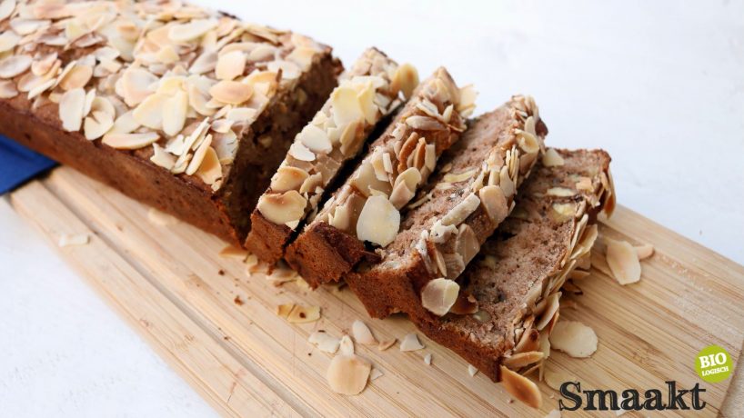 Bananenbrood is altijd een favoriet! Dit amandel bananenbrood is glutenvrij omdat het gemaakt is met amandelmeel. Bananenbrood is lekker als tussendoortje met een kopje thee. Maak de cake bijvoorbeeld op zondag dan heb je voor alle dagen een verantwoorde snack. Je kunt de cake eventueel ook invriezen.