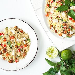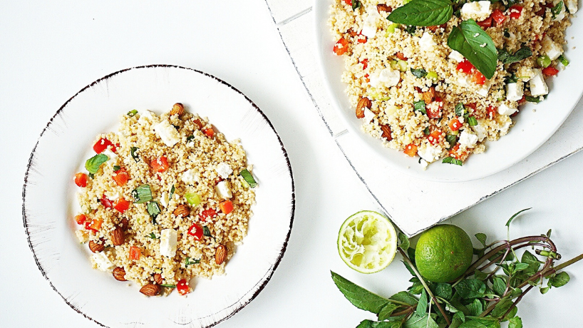 Op zoek naar een snelle, gezonde maaltijd? Deze volkoren couscous salade met feta is een frisse klassieker. Boordevol kleur, knapperige groenten, amandelen en een heldere limoendressing. Perfect als lichte lunch, makkelijke avondmaaltijd of als salade voor onderweg. En: je zet ’m in 10 minuten op tafel.