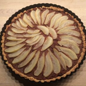 Deze herfstige taart is geïnspireerd op de sfeer van bos, dierenverhalen en warme smaken. Met een romige laag kastanjepuree en zoete, dunne plakjes peer in een knapperige deegbodem. Volledig plantaardig en ideaal voor een knusse middag of als feestelijk dessert. En het mooiste? Je maakt ‘m gewoon met kastanjepuree uit een blik of ga voor zelfgemaakt als je avontuurlijk bent!
